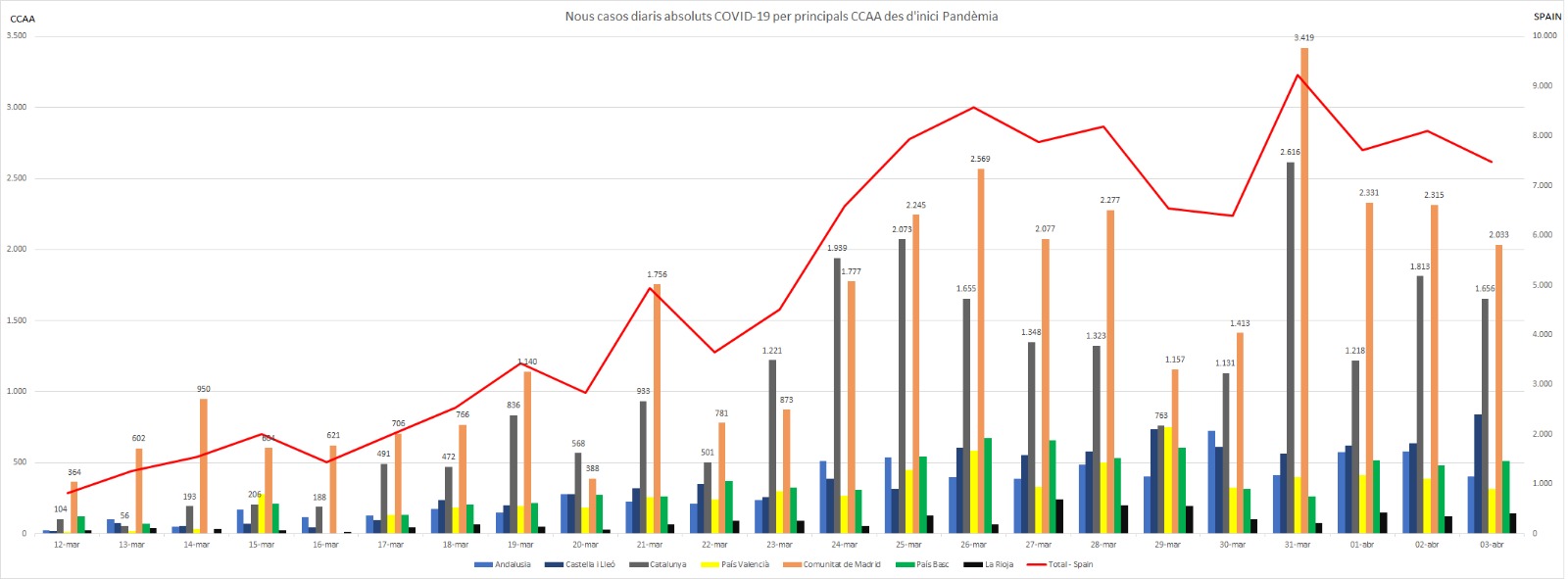 With the analysis of this table, it would seem that it is a little less optimistic at the moment, as the daily increases in new cases are still quite significant. However, if it can be deduced that the situation is beginning to stabilise.